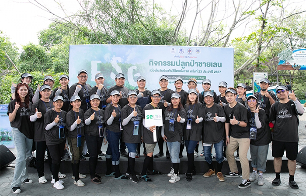SE Life อาคเนย์ประกันชีวิต ร่วมกิจกรรมอนุรักษ์สิ่งแวดล้อม ปลูกป่าชายเลน เนื่องในโอกาสวันประกันชีวิตแห่งชาติ ครั้งที่ 23 ประจำปี 2567 โดยมีนายชูฉัตร ประมูลผล เลขาธิการคณะกรรมการกำกับและส่งเสริมการประกอบธุรกิจประกันภัย (คปภ.) (คนที่ 7 จากซ้าย) เป็นประธานในพิธีเปิดงาน ณ ศูนย์ศึกษาธรรมชาติกองทัพบก กองสถานพักผ่อน กรมพลาธิการทหารบก (สถานตากอากาศบางปู) จ.สมุทรปราการ เมื่อวันที่ 14 กรกฎาคมที่ผ่านมา โดยบริษัท อาคเนย์ประกันชีวิต จำกัด (มหาชน) หรือ SE Life นำโดย นายกรสยาม นนทรัตน์ ผู้ช่วยกรรมการผู้จัดการ สายงานตัวแทน (คนที่ 6 จากซ้าย) พร้อมทีมผู้บริหาร ตัวแทน และพนักงาน SE Life หนึ่งในสายธุรกิจหลักของไทยกรุ๊ป โฮลดิ้งส์ กลุ่มธุรกิจประกันและการเงินในเครือทีซีซี รวมพลังรักษ์โลก ร่วมปลูกป่าชายเลน เพื่ออนุรักษ์ฟื้นฟูป่าชายเลนที่เป็นพื้นที่สำคัญต่อระบบนิเวศให้มีความอุดมสมบูรณ์ ลดปัญหาการกัดเซาะหน้าดินของน้ำทะเล และสร้างแหล่งดูดซับก๊าซเรือนกระจก อีกทั้งยังเป็นการส่งเสริมให้พนักงานและตัวแทนได้มีส่วนร่วมในการดูแลรักษาสิ่งแวดล้อมอย่างสม่ำเสมอเพื่อสิ่งแวดล้อมและสังคมที่ยั่งยืน