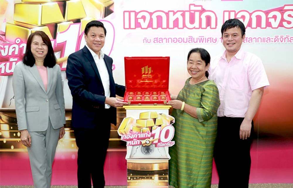 ผอ.ออมสิน มอบรางวัลพิเศษทองคำแท่งหนัก 10 กิโลกรัม ให้แก่ผู้โชคดีแคมเปญสลากออมสินแจกทอง