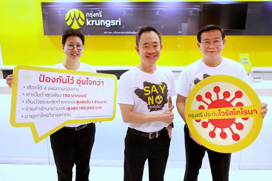 ป้องกันไว้ อุ่นใจกว่า ด้วย “กรุงศรี ประกันไวรัสโคโรนา” (COVID-19) กรณีเจ็บป่วยด้วยภาวะโคม่าหรือ การเจ็บป่วยระยะสุดท้าย ที่มีสาเหตุมาจากการติดเชื้อไวรัสโคโรนา (COVID-19) รับเงินชดเชยสูงสุดถึง 1 ล้านบาท ส่วนกรณีต้องเข้ารับการรักษาจากการติดเชื้อไวรัสโคโรนา ประกันคุ้มครองการจ่ายค่ารักษาพยาบาลตามจริงสูงสุด 100,000 บาท สนใจสมัครหรือสอบถามข้อมูลเพิ่มเติมได้ที่สาขาของธนาคารกรุงศรีอยุธยาทั่วประเทศ หรือ Call 1572 และ Facebook: Krungsri Simple