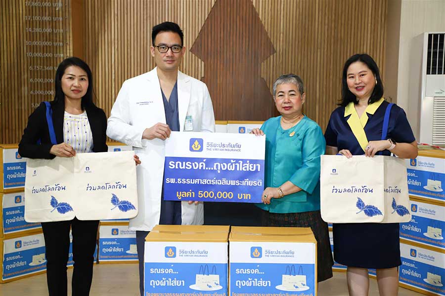 ผศ.นพ.ปรีดิ์ นิมมานนิตย์ ผู้ช่วยรองผู้อำนวยการฝ่ายคลัง โรงพยาบาลธรรมศาสตร์เฉลิมพระเกียรติ รับมอบถุงผ้าใส่ยา จำนวน 4,500 ใบ มูลค่ารวม 500,000 บาท ตามโครงการ "รักษ์ถุงผ้า No Plastic" ของ บริษัท วิริยะประกันภัย จำกัด (มหาชน) โดยมี นางสาวกานดา วัฒนายิ่งสมสุข ที่ปรึกษา ฝ่ายการตลาดผู้ผลิตและผู้แทนจำหน่ายรถยนต์ เป็นผู้แทนมอบ เพื่อให้ทางโรงพยาบาลธรรมศาสตร์เฉลิมพระเกียรติ ได้นำไปใช้ใส่ยาให้แก่คนไข้ที่มาใช้บริการ โดยเฉพาะผู้ป่วยโรคเรื้อรังที่รับการรักษาต่อเนื่องหลายเดือนจึงต้องรับยากลับบ้านจำนวนมาก นอกจากนี้ยังเป็นการรณรงค์ส่งเสริมและสร้างจิตสำนึกให้ประชาชนหันมาใช้ถุงผ้าทดแทนการใช้ถุงพลาสติกอย่างจริงจังและต่อเนื่อง ณ โรงพยาบาลธรรมศาสตร์เฉลิมพระเกียรติ ถนน พหลโยธิน ตำบล คลองหนึ่ง อำเภอคลองหลวง จังหวัดปทุมธานี