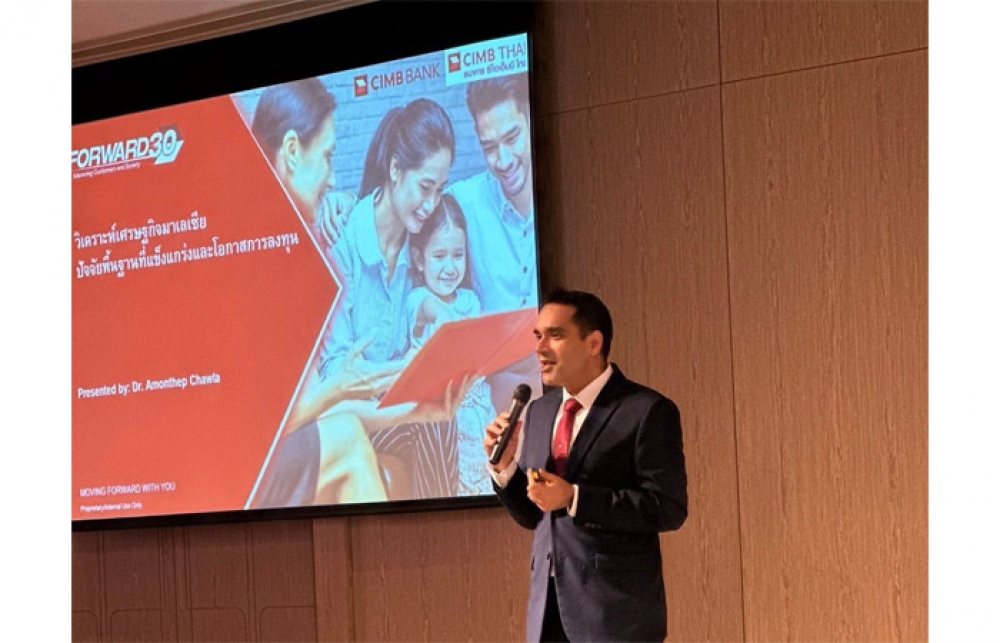 ด้านดร.อมรเทพ จาวะลา Head, Research Office ธนาคาร ซีไอเอ็มบี ไทย กล่าวว่า เศรษฐกิจมาเลเซียในปีนี้คาดว่าจะเติบโต 4.2-4.3% และมีสัญญาณว่าเศรษฐกิจจะโตเหนือ 4% ต่อปีในระยะ 5 ปีข้างหน้า เศรษฐกิจมีศักยภาพสูงจากโครงสร้างประชากรส่วนใหญ่อยู่ในวัยหนุ่มสาว อีกทั้งปัจจัยขับเคลื่อนหลักมาจากการบริโภคภาคเอกชน รายได้และค่าจ้างมีอัตราเติบโต ภาคอุตสาหกรรมมีการลงทุนและก่อสร้าง สำคัญคือผู้บริโภคมีความเชื่อมั่น กล้าใช้จ่าย การเมืองมีเสถียรภาพ มีการลงทุนจากต่างชาติต่อเนื่อง แม้ว่าเศรษฐกิจมาเลเซียอาจเผชิญกับความเสี่ยงจากสงครามการค้า แต่ด้วยสินค้าส่งออกมีคุณภาพสูง ทำให้มาเลเซียมีศักยภาพในการแข่งขัน