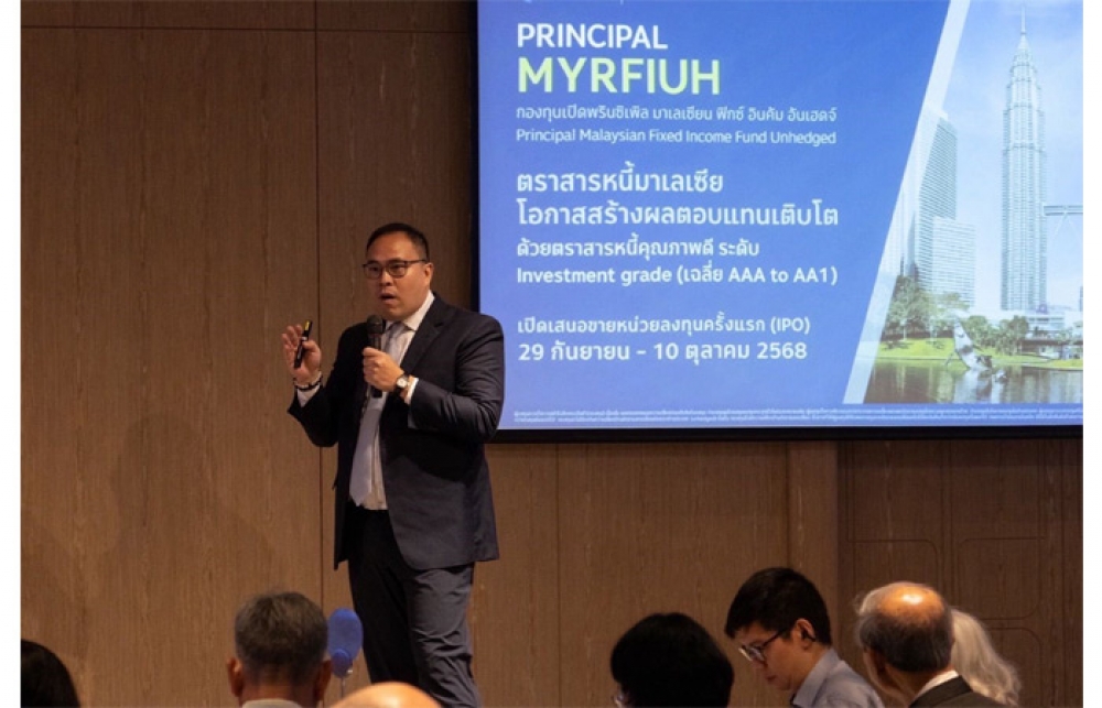 ขณะที่นายศุภจักร เอิบประสาทสุข รองกรรมการผู้จัดการ หัวหน้าฝ่ายกลยุทธ์การลงทุน บลจ. พรินซิเพิล จำกัด กล่าวว่า กองทุนเปิด PRINCIPAL MYRFIUH ที่มีนโยบายลงทุนในตราสารหนี้ประเทศมาเลเซีย ปัจจุบันกองทุนลงทุนในหน่วยลงทุนของกองทุนรวมต่างประเทศเพียงกองทุนเดียวคือ Principal Lifetime Bond Fund (กองทุนหลัก) Share Class MYR โดยเน้นลงทุนในพันธบัตรรัฐบาลและตราสารหนี้เอกชนมาเลเซียคุณภาพสูงระดับ Investment Grade (เครดิตเฉลี่ย AAA-AA1) ให้อัตราผลตอบแทน (Yield to Maturity) ราว 3.8% และ อายุตราสารเฉลี่ยของพอร์ต (Duration) ประมาณ 4.4 ปี พร้อมการันตีคุณภาพด้วย Morningstar 4 ดาว ผลตอบแทนกองทุนโดดเด่น YTD (Jan-Aug 25) 4.3% และเฉลี่ยย้อนหลัง 3 ปี 5.4% ต่อปี ที่สำคัญ กองทุนนี้มีนโยบายเปิดรับความเสี่ยงค่าเงิน (Unhedged) ช่วยลดต้นทุนค่าใช้จ่ายในการป้องกันความเสี่ยง และยังมีโอกาสได้ผลตอบแทนเพิ่มจากแนวโน้มค่าเงินบาทเทียบมาเลเซียริงกิตที่คาดว่าอ่อนค่าในระยะข้างหน้า