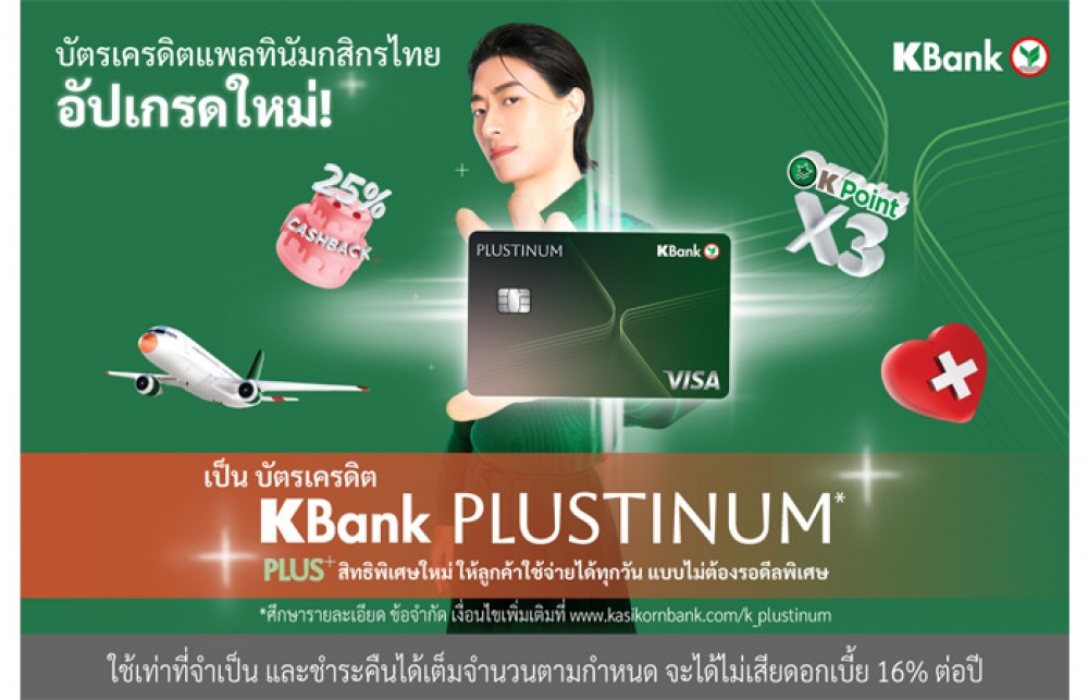 สำหรับลูกค้าใหม่ยังสามารถพลัสความพิเศษไปได้อีก เมื่อสมัครบัตรเครดิต KBank PLUSTINUM รับคะแนน K Point เพิ่มอีก 3,000 คะแนน รวมรับ K Point สูงสุด 268,000 คะแนน และสามารถนำคะแนน K Point ไปเลือกแลกของแบรนด์ดังคุณภาพดี มูลค่าสูงสุด 39,900 บาท ตั้งแต่วันที่ 7 ต.ค. – 31 ธ.ค. 2568