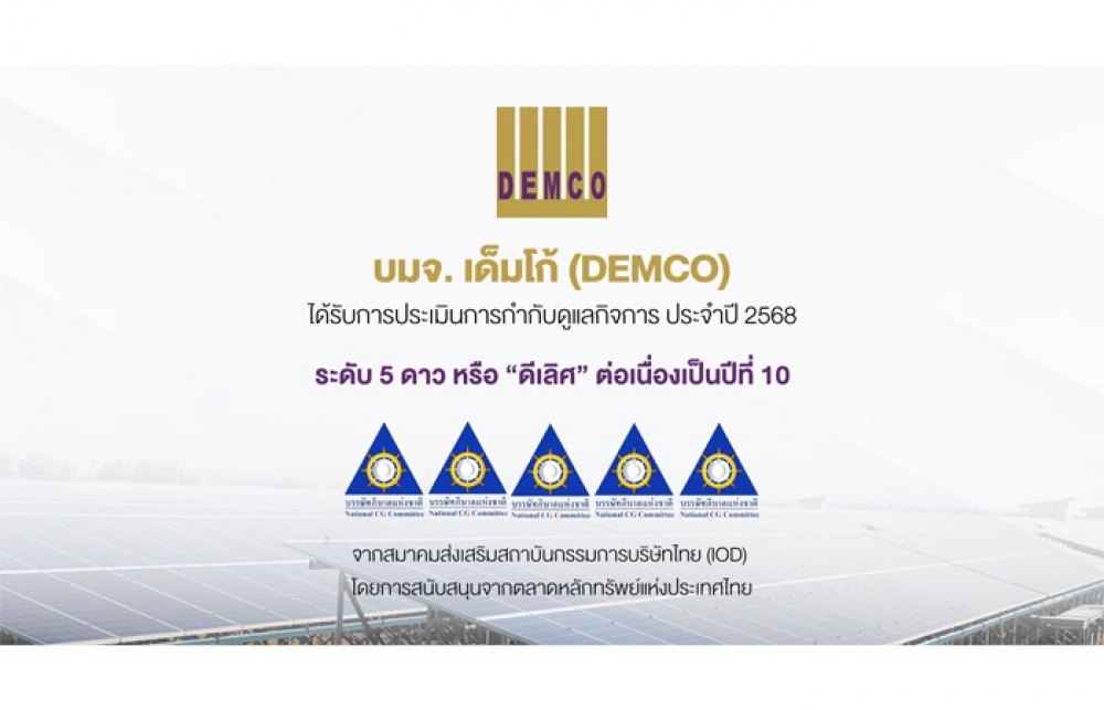 DEMCO รักษามาตรฐานดีเลิศ! คว้า CGR 5 ดาวต่อเนื่อง 10 ปีซ้อน