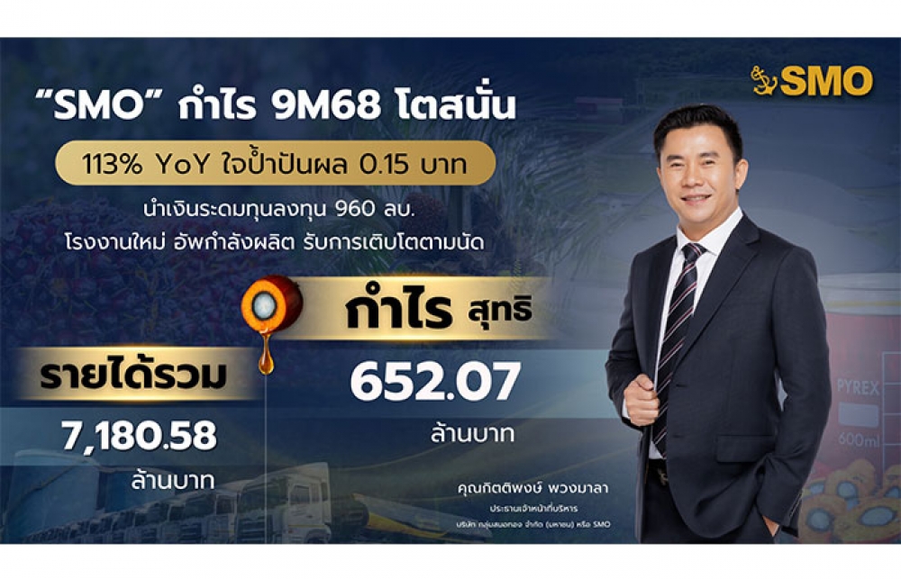 SMO งบ 9 เดือนปี 68 กำไรโตสนั่น 113% ปันผล 0.15 บ./หุ้น