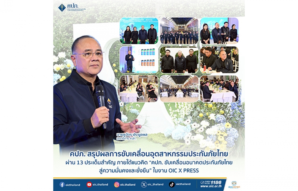 นิวส์ คอนเน็คท์ - คปภ. สรุปผลการขับเคลื่อนอุตสาหกรรมประกันภัยไทย ผ่าน 13 ประเด็นสำคัญ ภายใต้แนวคิด “คปภ. ขับเคลื่อนอนาคตประกันภัยไทย สู่ความมั่นคงและยั่งยืน” ในงาน OIC X PRESS