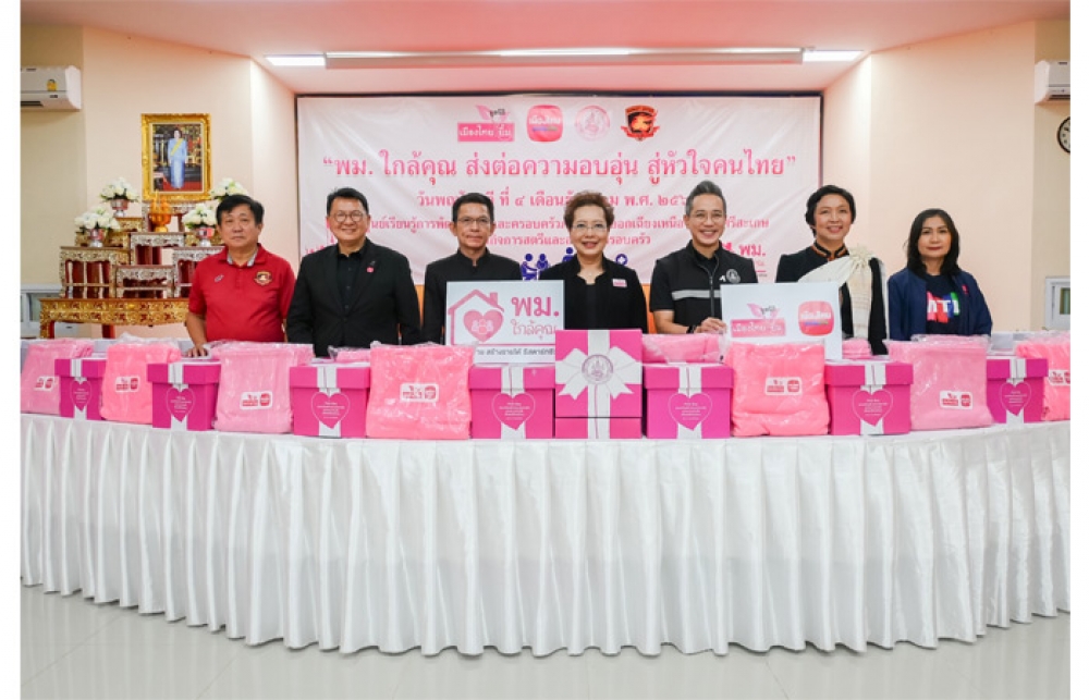 สำหรับกล่อง “Pink Box” เป็นกิจกรรมเพื่อสังคมที่เมืองไทยประกันชีวิตและมูลนิธิเมืองไทยยิ้มดำเนินการเพื่อสานต่อภารกิจของกรมกิจการสตรีและสถาบันครอบครัว ในการเสริมสร้างความเสมอภาคและความเข้มแข็งให้ครอบครัวไทย ภายในบรรจุของใช้จำเป็นและของใช้ด้านสุขอนามัย เพื่อส่งต่อกำลังใจแก่สตรีกลุ่มเปราะบางและครอบครัวที่ขาดแคลน ขณะที่ผ้าห่มกันหนาวที่นำมามอบในกิจกรรมครั้งนี้ ผลิตจากกระบวนการอัพไซคลิง โดยใช้ขวดพลาสติกขนาด 1.5 ลิตร จำนวน 11 ขวดต่อผืน ช่วยลดปริมาณขยะและสร้างคุณค่าใหม่ให้ทรัพยากร สะท้อนแนวคิดการดูแลสิ่งแวดล้อมควบคู่การดูแลสังคมของเมืองไทยประกันชีวิตและมูลนิธิเมืองไทยยิ้มอย่างยั่งยืน