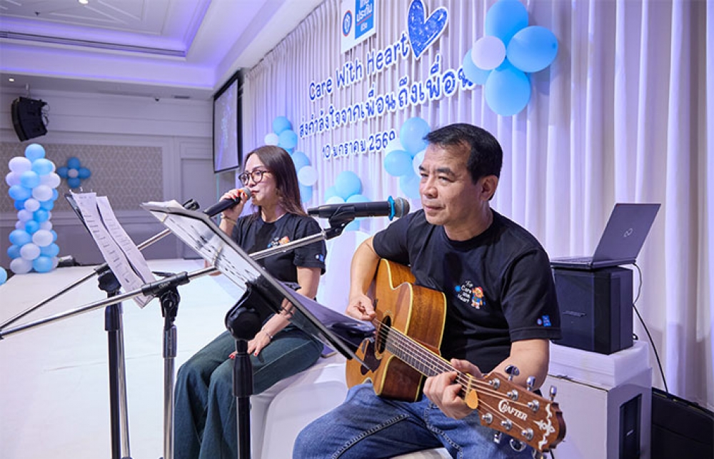 ดนตรีจิตอาสา เยียวยาและสร้างพลังใจ : พนักงานไทยประกันชีวิตจิตอาสา ลงพื้นที่จัดกิจกรรม ดนตรีจิตอาสา รวมถึงกิจกรรมสันทนาการต่างๆ เพื่อเติมรอยยิ้ม และสร้างพลังใจให้แก่คนในชุมชน