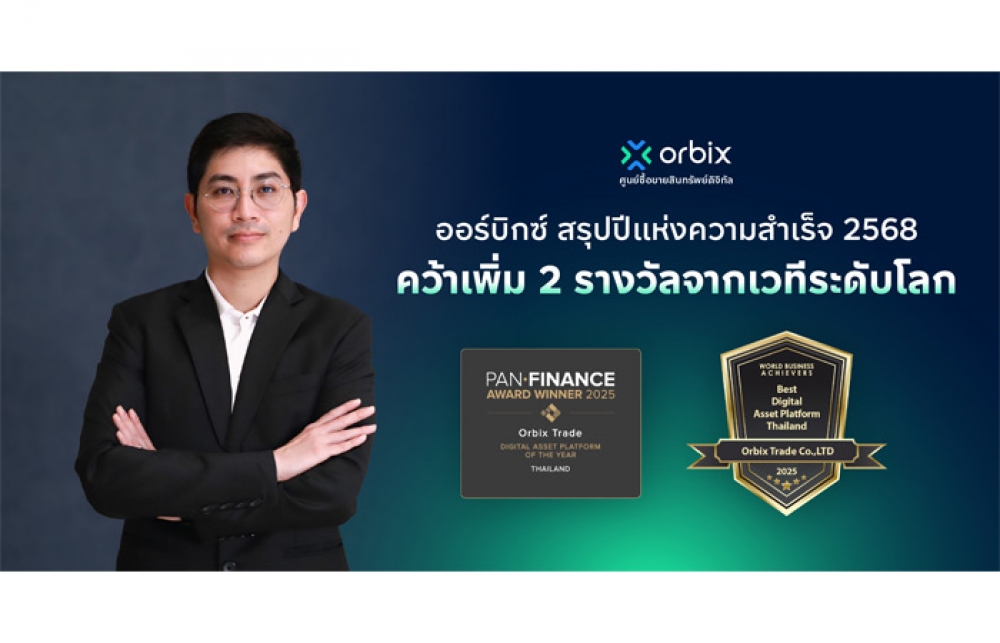 นิวส์ คอนเน็คท์ - ออร์บิกซ์ เทรด (orbix) ผู้นำด้านแพลตฟอร์มศูนย์ซื้อขายสินทรัพย์ดิจิทัลของไทย ภายใต้ ออร์บิกซ์ กรุ๊ป เดินหน้าสร้างมาตรฐานความน่าเชื่อถือในอุตสาหกรรมอย่างต่อเนื่อง ล่าสุดคว้าเพิ่ม 2 รางวัลจากสื่อด้านการเงินและธุรกิจชั้นนำระดับโลก ซึ่งพิจารณาจากศักยภาพในหลากหลายมิติ ทั้งด้านเทคโนโลยี การกำกับดูแล มาตรฐานความปลอดภัย และการออกแบบประสบการณ์ผู้ใช้งานที่ตอบโจทย์นักลงทุนยุคใหม่ โดยออร์บิกซ์ถือเป็น แพลตฟอร์มสินทรัพย์ดิจิทัลของไทยรายแรก ที่ได้รับรางวัลจากทั้งสองเวทีนี้ ได้แก่ รางวัลแพลตฟอร์มสินทรัพย์ดิจิทัลแห่งปีของประเทศไทย ประจำปี 2568 (Digital Asset Platform of the Year – Thailand 2025) จาก PAN Finance สื่อด้านการเงินและธุรกิจระดับนานาชาติจากสหราชอาณาจักร, รางวัลแพลตฟอร์มสินทรัพย์ดิจิทัลยอดเยี่ยมของประเทศไทย ประจำปี 2568 (Best Digital Asset Platform – Thailand 2025) จาก World Business Archiver