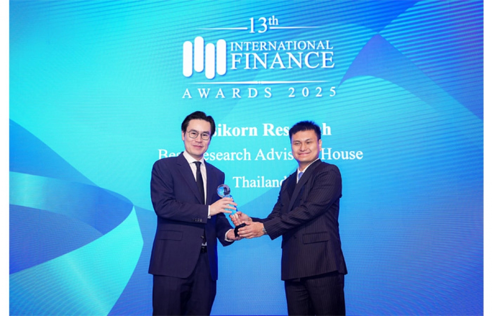 นิวส์ คอนเน็คท์ - นายบุรินทร์ อดุลวัฒนะ กรรมการผู้จัดการ และ Chief Economist บริษัท ศูนย์วิจัยกสิกรไทย จำกัด เป็นผู้แทนเข้ารับรางวัล Best Research Advisory House จากงาน International Finance Awards 2025 สะท้อนถึงความมุ่งมั่นในการพัฒนางานวิจัยและบทวิเคราะห์ทางเศรษฐกิจอย่างต่อเนื่อง ตอกย้ำบทบาทของศูนย์วิจัยกสิกรไทยในฐานะผู้นำด้านการให้คำปรึกษาเชิงวิชาการ เพื่อสนับสนุนการตัดสินใจทางธุรกิจและการลงทุนของธนาคาร ภาคธุรกิจ และลูกค้าในทุกภาคส่วน สำหรับ International Finance Awards เป็นรางวัลระดับนานาชาติที่มอบให้แก่องค์กรที่มีความเป็นเลิศในอุตสาหกรรมทางการเงินและบริการที่เกี่ยวข้องในระดับภูมิภาคและระดับสากล จัดโดย International Finance นิตยสารด้านธุรกิจและการเงินชั้นนำระดับโลกจากประเทศอังกฤษ ณ โรงแรมวอลดอร์ฟ แอสโทเรีย กรุงเทพฯ เมื่อเร็ว ๆ นี้