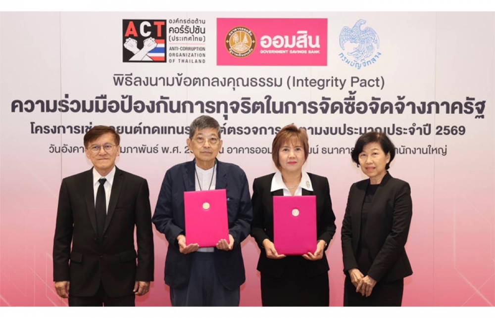 นิวส์ คอนเน็คท์ - นางญดาภรณ์ ศรีพัฒน์ รองผู้อำนวยการธนาคารออมสิน กลุ่มปฏิบัติการ ลงนามบันทึกข้อตกลงคุณธรรม (Integrity Pact) กับคณะผู้สังเกตการณ์ตามข้อตกลงคุณธรรม องค์กรต่อต้านคอร์รัปชัน (ประเทศไทย) โดยมี กรมบัญชีกลาง เป็นสักขีพยาน ในความร่วมมือป้องกันการทุจริตในการจัดซื้อจัดจ้างภาครัฐ โครงการเช่ารถยนต์ทดแทนรถยนต์ตรวจการณ์ เพื่อใช้ในธุรกิจของธนาคารประจำสายงานกิจการสาขา และฝ่ายงานที่เกี่ยวข้อง ทดแทนสัญญาเช่าเดิมที่จะครบอายุสัญญา ซึ่งเป็นความร่วมมือป้องกันการทุจริตในการจัดซื้อจัดจ้างภาครัฐ ตามยุทธศาสตร์ในการป้องกันและปราบปรามการทุจริตคอร์รัปชันอย่างยั่งยืนของรัฐบาล ที่มีนโยบายส่งเสริมการบริหารงานที่มีธรรมาภิบาล และการป้องกันปราบปรามการทุจริตและประพฤติมิชอบในภาครัฐที่สร้างความไม่เป็นธรรมและเหลื่อมล้ำในสังคม สำหรับโครงการที่มีวงเงินจัดซื้อจัดจ้างตั้งแต่ 1,000 ล้านบาทขึ้นไป สอดคล้องกับการดำเนินการด้วยหลักธรรมาภิบาลของธนาคาร ที่ให้ความสำคัญในการบริหารจัดการงบประมาณ และทรัพยากรของธนาคาร ด้วยความรอบคอบ โปร่งใส และเกิดประโยชน์สูงสุด มีกระบวนการทำงานที่มีความสุจริต เที่ยงธรรม ตรวจสอบได้ในทุกขั้นตอน และเปิดโอกาสให้ภาคเอกชนเข้าแข่งขันอย่างเท่าเทียม โดยมี นายชาญเชพ ชินบานทอง ผู้ช่วยผู้อำนวยการธนาคารออมสิน สายงานบริหารงานกลาง กลุ่มปฎิบัติการ ร่วมเป็นสักขีพยาน ณ อาคารออมสินพิพัฒน์ ธนาคารออมสิน สำนักงานใหญ่ เมื่อวันที่ 17 กุมภาพันธ์ 2569