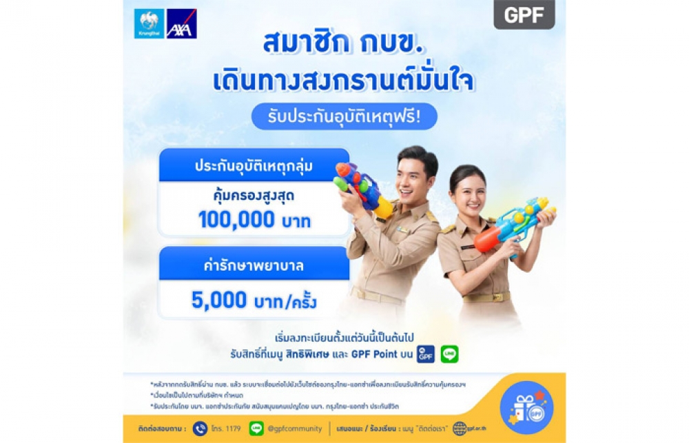 โดยสิทธิพิเศษดังกล่าวให้ความคุ้มครองกรณีเสียชีวิต สูญเสียอวัยวะ สายตา หรือทุพพลภาพถาวรสิ้นเชิงจากอุบัติเหตุ วงเงินคุ้มครองสูงสุด 100,000 บาท พร้อมความคุ้มครองค่ารักษาพยาบาลจากอุบัติเหตุแต่ละครั้ง สูงสุด 5,000 บาท สมาชิกสามารถลงทะเบียนรับสิทธิ์ความคุ้มครอง ผ่านทางแอป กบข. My GPF Application หรือ LINE กบข. @gpfcommunity จากนั้นระบบจะเชื่อมต่อไปยังเว็บไซต์ของกรุงไทย-แอกซ่าเพื่อดำเนินการลงทะเบียน ลงทะเบียนได้ตั้งแต่วันนี้ถึงวันที่ 30 มิ.ย. 2569