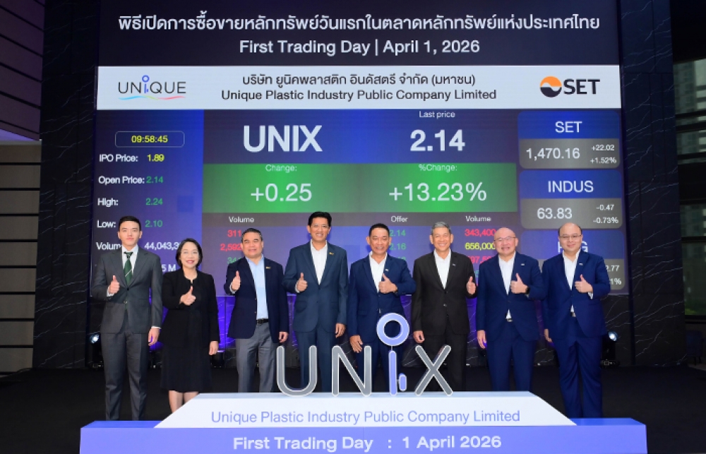 UNIX เปิดเทรดวันแรกราคาพุ่งเหนือจอง 13.23%