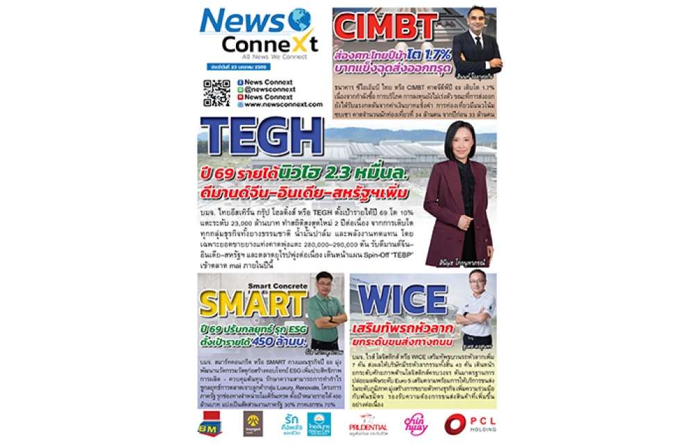 TEGH ปี 69 รายได้นิวไฮ 2.3 หมื่นล. - CIMBT ส่องศก.ไทยปีม้าโต1.7%