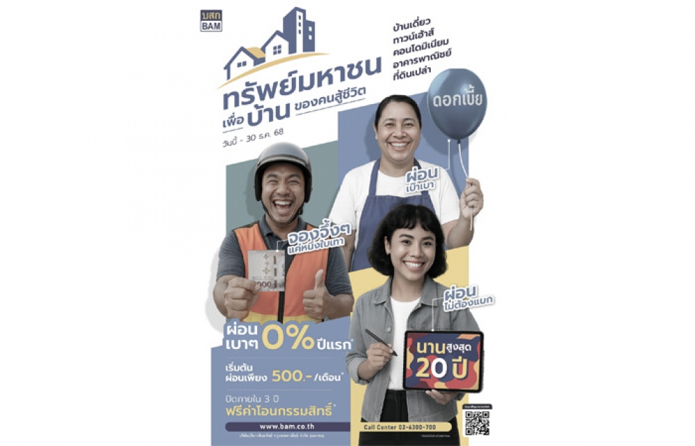 เมื่อวันที่ 3 พฤศจิกายน 2568 ดร. รักษ์ วรกิจโภคาทร ประธานเจ้าหน้าที่บริหาร บริษัทบริหารสินทรัพย์ กรุงเทพพาณิชย์ จำกัด (มหาชน) หรือ BAM เปิดเผยว่า โครงการทรัพย์มหาชน เพื่อบ้านของคนสู้ชีวิต คือ การวางแนวคิดนอกกรอบข้อจำกัดต่าง ๆ เพื่อเติมเต็มความฝันของคนที่อยากมีบ้านเป็นของตัวเอง แม้คุณจะเป็นผู้ประกอบอาชีพอิสระ ผู้มีงบประมาณจำกัด