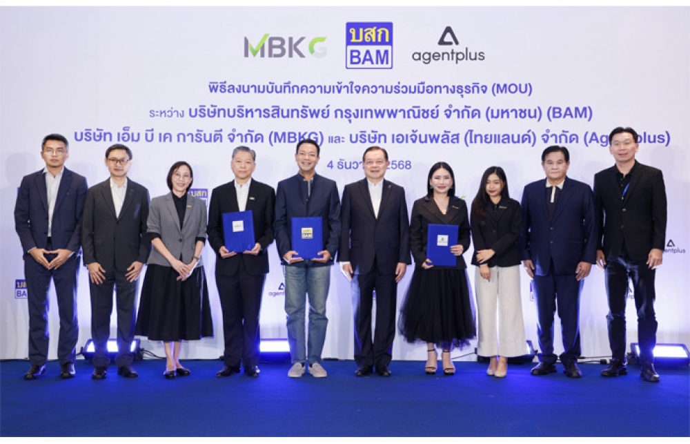 เมื่อวันที่ 4 ธันวาคม 2568 ดร.รักษ์ วรกิจโภคาทร ประธานเจ้าหน้าที่บริหาร บริษัท บริหารสินทรัพย์ กรุงเทพพาณิชย์ จำกัด (มหาชน) หรือ BAM เปิดเผยว่า บริษัทได้ลงนามบันทึกข้อตกลงความร่วมมือทางธุรกิจ (MOU) บริษัท เอ็ม บี เค การันตี จำกัด (MBKG) และบริษัท เอเจ้นพลัส (ไทยแลนด์) จำกัด (Agentplus) เพื่อลดระยะเวลาในการถือครองทรัพย์ และเร่งการสร้างรายได้ รวมทั้งเพิ่มช่องทางการให้บริการลูกค้า เพื่อให้เกิดการเติบโตทางธุรกิจอย่างยั่งยืน ซึ่งความร่วมมือดังกล่าวเป็นการเดินหน้ากลยุทธ์ Partnership อย่างครบวงจรโดยใช้บริษัทตัวแทนขายอสังหาริมทรัพย์มืออาชีพที่เข้าใจพฤติกรรมผู้บริโภคอย่างลึกซึ้ง ครอบคลุมพื้นที่ทั้งในกรุงเทพฯ และต่างจังหวัด ผสานกับเทคโนโลยีและกลยุทธ์การตลาดดิจิทัลสมัยใหม่ พร้อมทั้งผู้ประกอบการที่มีความเชี่ยวชาญในการให้สินเชื่อ ซึ่งจะช่วยให้การบริหารจัดการและจำหน่ายทรัพย์ของBAM เป็นไปอย่างมีระบบและมีประสิทธิภาพ