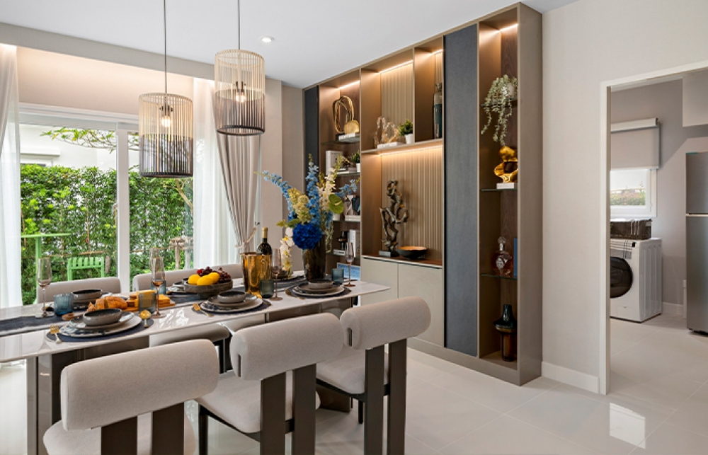 ขณะเดียวกัน ในส่วนของเฟอร์นิเจอร์ Built-in และงานตกแต่งที่ต้องใช้งานในชีวิตประจำวัน ศุภาลัยเลือกใช้ แผ่นลามิเนต ที่มีคุณสมบัติป้องกันและยับยั้งการเจริญเติบโตของแบคทีเรียและเชื้อรา เพื่อช่วยลดการสะสมเชื้อโรคในพื้นที่สัมผัสร่วม พร้อมลดการปล่อยสารอินทรีย์ระเหยง่ายจากวัสดุ เพื่อให้สภาพแวดล้อมภายในบ้านมีคุณภาพดีขึ้นอย่างต่อเนื่องในระยะยาว และยังให้ความสำคัญกับการใช้ทรัพยากรอย่างรับผิดชอบ โดยเลือกใช้วัสดุที่ผ่านการประเมิน EPD (Environmental Product Declaration) ซึ่งเป็นการประเมินผลกระทบต่อสิ่งแวดล้อมตลอดวงจรชีวิตผลิตภัณฑ์ (LCA: Life Cycle Assessment) ตั้งแต่การผลิตจนถึงหมดอายุการใช้งาน เพื่อช่วยลดผลกระทบต่อสิ่งแวดล้อมโดยรวม นอกจากนี้ยังคำนึงถึงการใช้ทรัพยากรอย่างรับผิดชอบผ่านวัสดุที่ได้รับการรับรอง FSC (Forest Stewardship Council) ซึ่งสะท้อนถึงการเลือกใช้ผลิตภัณฑ์จากแหล่งป่าไม้ปลูกหรือการจัดการป่าไม้อย่างเหมาะสม ลดการทำลายสิ่งแวดล้อมตั้งแต่ต้นทาง