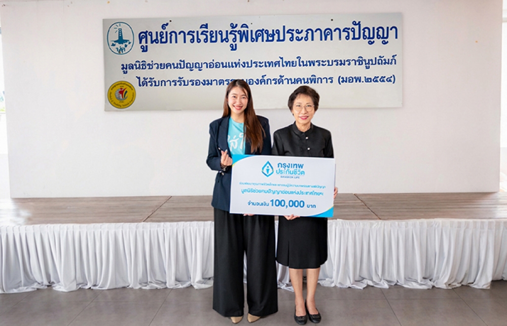 บริษัท กรุงเทพประกันชีวิต จำกัด (มหาชน) เดินหน้าสานต่อภารกิจด้านความรับผิดชอบต่อสังคม (CSR) ด้วยการส่งต่อ “พลังของความใส่ใจ” ในเดือนแห่งความรัก โดยมุ่งยกระดับคุณภาพชีวิต ของกลุ่มเปราะบางในสังคม ผ่านการสนับสนุนด้านการศึกษาและการพัฒนาศักยภาพอย่างยั่งยืน โดย นางสาวศริฐณี ศิริสมบูรณ์ ผู้จัดการอาวุโส ส่วนงานประชาสัมพันธ์และกิจกรรมเพื่อสังคม (ซ้าย) เป็นผู้แทนบริษัทฯ มอบเงินสนับสนุนจำนวน 100,000 บาท ให้แก่ “ศูนย์การเรียนรู้พิเศษประภาคารปัญญา” ในสังกัดมูลนิธิช่วยคนปัญญาอ่อนแห่งประเทศไทย ในพระบรมราชินูปถัมภ์ เพื่อส่งเสริมโอกาสในการเรียนรู้และพัฒนาคุณภาพชีวิตของผู้มีความบกพร่องทางสติปัญญา โดยมี นางกาญจนา ภัทราพรนันท์ ผู้อำนวยการศูนย์การเรียนรู้พิเศษประภาคารปัญญา (ขวา) เป็นผู้รับมอบ ณ ศูนย์การเรียนรู้พิเศษประภาคารปัญญา แขวงฉิมพลี เขตตลิ่งชัน กรุงเทพฯ