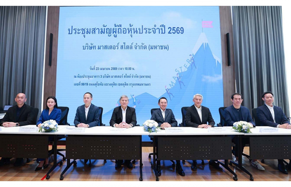 บริษัท มาสเตอร์ สไตล์ จำกัด (มหาชน) หรือ MASTER ในนามโรงพยาบาลมาสเตอร์พีช จัดประชุมสามัญผู้ถือหุ้นประจำปี 2569 โดยมี นายแพทย์เจษฎา โชคดำรงสุข ประธานกรรมการ พร้อมด้วย นายจักรกฤศฏิ์ พาราพันธกุล นายวิเชฐ ตันติวานิช นายธนวัฒน์ เลิศวัฒนารักษ์ นายณัติรุจน์ วรรณวิมลพงษ์ กรรมการอิสระและกรรมการตรวจสอบ รวมทั้ง นายแพทย์ระวีวัฒน์ มาศฉมาดล กรรมการและประธานกรรมการบริหาร นางสาวลภัสรดา เลิศภานุโรจ กรรมการและประธานเจ้าหน้าที่บริหาร รวมทั้ง นายพิสุจน์ น้ำสา กรรมการและประธานเจ้าหน้าที่สายงานการเงินบัญชี ถ่ายภาพร่วมกันภายหลังเสร็จสิ้นพิธีการ ซึ่งที่ประชุมผู้ถือหุ้นมีมติอนุมัติทุกวาระตามที่คณะกรรมการเสนอ