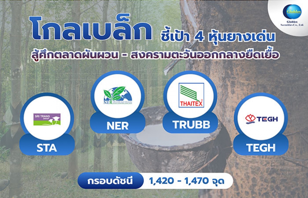 ด้าน นายวัชเรนทร์ จงยรรยง ผู้อำนวยการฝ่ายวิจัย บล. โกลเบล็ก แนะนำกลยุทธ์การลงทุนในหุ้นที่มีปัจจัยบวก โดยเฉพาะกลุ่มธุรกิจยางพาราที่ได้รับอานิสงส์โดยตรงจากราคายางพาราในตลาดโลกที่ยังคงทรงตัวอยู่ในระดับสูง ได้แก่ STA, NER, TRUBB และ TEGH เพื่อลดความเสี่ยงและสร้างโอกาสรับผลตอบแทนที่ดีในช่วงสัปดาห์นี้