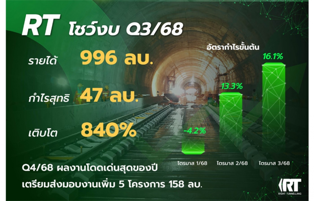RT โชว์งบ Q3 กำไรพุ่ง 840% ส่งซิกผลงานโค้งท้ายพีคสุดของปี