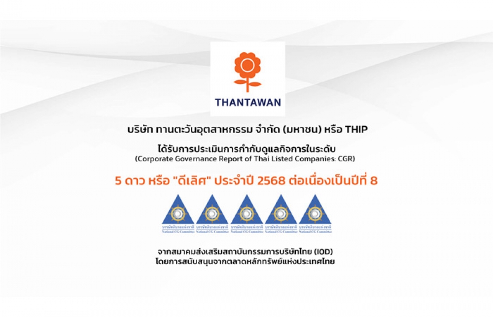 THIP ได้รับการประเมิน CGR 5 ดาว ประจำปี 68