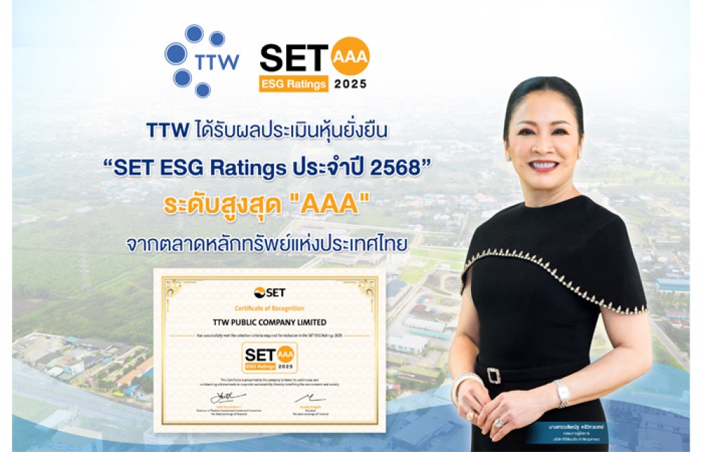 TTW ได้รับผลประเมินหุ้นยั่งยืน “SET ESG Rating ระดับสูงสุด AAA”