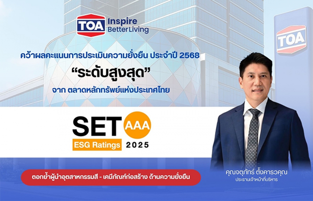 TOA คว้าหุ้นยั่งยืน ระดับสูงสุด ‘AAA’ จากการประเมิน SET ESG Ratings ปี 2568