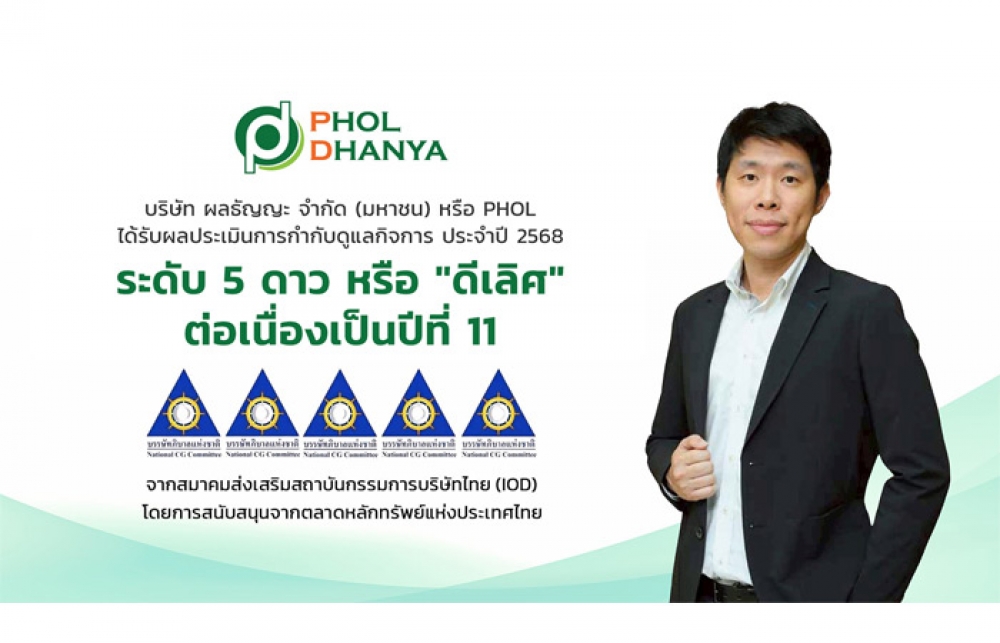 PHOL รับการประเมิน CGR ระดับ 5 ดาว ต่อเนื่องเป็นปีที่ 11