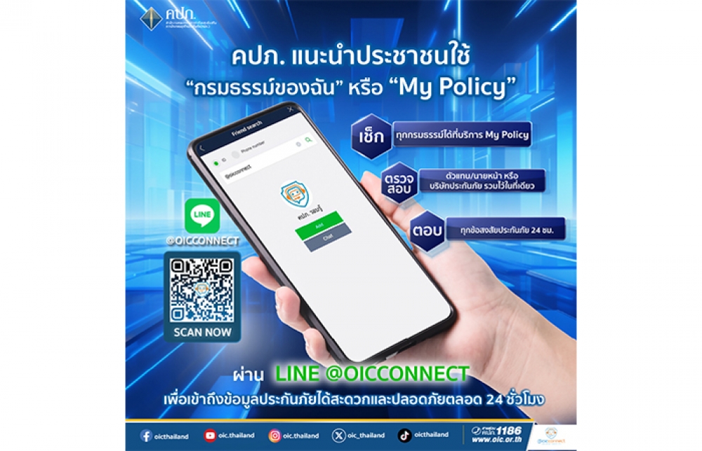 คปภ. แนะใช้บริการ “กรมธรรม์ของฉัน” หรือ “My Policy” ผ่าน Line