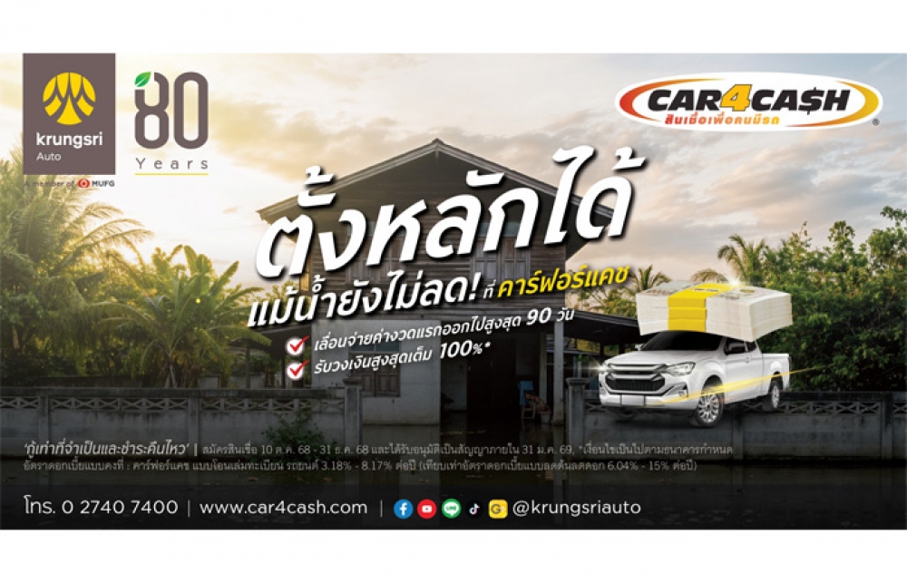 คาร์ฟอร์แคช ส่งโครงการ “ตั้งหลัก 90 วัน” ช่วยลูกค้าประสบภัยน้ำท่วม
