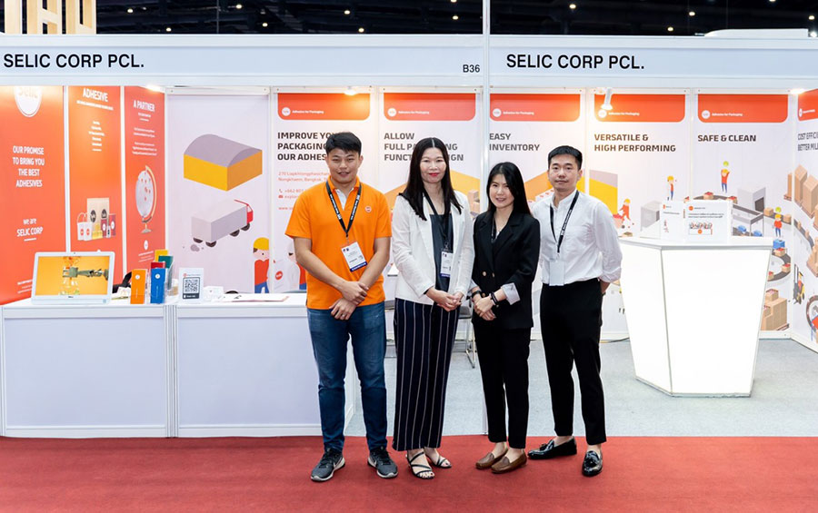นางสาวยุวดี เอี่ยมสนธิทรัพย์ (ที่ 2 จากซ้าย) กรรมการผู้จัดการ บริษัท ซีลิค คอร์พ จำกัด (มหาชน) หรือ SELIC ออกบูท เพื่อนำเสนอโซลูชั่นด้าน packaging ของบริษัทฯ และด้านฉลากหรือสติ๊กเกอร์ จากบริษัทย่อย PMCL เพื่อให้ผู้เข้าร่วมชมงานได้เข้าใจถึงธุรกิจบรรจุภัณฑ์และงานพิมพ์ ภายในงาน Pack Print International 2019 ครั้งที่ 7 ซึ่งงานดังกล่าวจัดขึ้นระหว่างวันที่ 18-21 กันยายน 2562 ณ บูท B-36 ฮอลล์ 100 โซน Labelling Zone ศูนย์แสดงสินค้าและการประชุมอิมแพค เมืองทองธานี