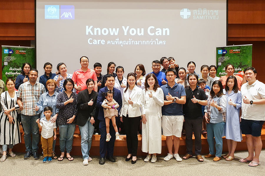 บมจ.กรุงไทย-แอกซ่า ประกันชีวิต นำโดย นายแพทย์ มาร์ค สุนทรเกศ ผู้อำนวยการด้านการแพทย์ (ที่ 6 จากซ้าย) จัดกิจกรรมลูกค้าสุดเอ็กซ์คลูซีฟ “แคร์คนที่คุณรักมากกว่าใคร” เพื่อให้ความรู้เกี่ยวกับ เทคนิคการสร้างวินัยเชิงบวก กับการพัฒนาทักษะสมอง จากพญ.เสาวภา พรจินดารักษ์ (ที่ 7 จากซ้าย) พร้อมเรียนรู้ First Aid และ การ CPR (Cardiopulmonary Resuscitation) หรือวิธีการช่วยเหลือภาวะฉุกเฉินสำหรับเด็ก จากทีมแพทย์และพยายาลฉุกเฉินเด็ก โรงพยาบาลสมิติเวช ศรีนครินทร์ ซึ่งสอดคล้องกับเป้าหมายหลักของบริษัทฯ ที่สนับสนุน อยู่เคียงข้าง และเป็นเพื่อนคู่คิดกับลูกค้าของเรา เพื่อให้ทุกคนได้มีสุขภาพที่ดีขึ้น และมีชีวิตที่ดีขึ้นตามใจปรารถนา
