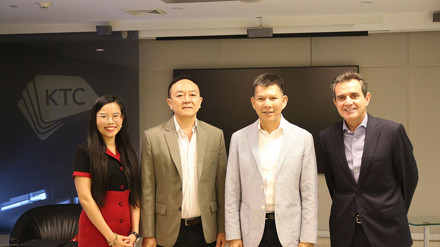 นายระเฑียร ศรีมงคล (กลางขวา) ประธานเจ้าหน้าที่บริหาร “เคทีซี” หรือ บริษัท บัตรกรุงไทย จำกัด (มหาชน) ร่วมแลกเปลี่ยนวิสัยทัศน์มุมมองรวมถึงทิศทางและความท้าทายในการนำเป้าหมายการพัฒนาที่ยั่งยืน (Sustainable Development Goals–SDGs) มาผนวกกับการดำเนินธุรกิจเพื่อนำพาให้บริษัทเติบโตอย่างยั่งยืน ซึ่งเคทีซีเป็น 1 ใน 4 บริษัทชั้นนำที่ได้รับคัดเลือกให้ร่วมแสดงความคิดเห็นในงานวิจัยระดับโลก (the 2019 Global SDG Challenge) ซึ่งจัดโดยบริษัทไพร้ซวอเตอร์เฮาส์คูเปอร์ส คอนซัลติ้ง จำกัด หรือ “พีดับบลิวซี” โดยนายชุติเดช ชยุติ (กลางซ้าย) รองประธานเจ้าหน้าที่บริหารอาวุโส – คอร์ปอเรท ไฟแนนซ์ “เคทีซี” ร่วมให้เกียรติต้อนรับคณะผู้บริหารของพีดับบลิวซี มร. คริสโตเฟอร์ สุรเดชวิบูลย์ (ขวา) และน.ส.กุลวัลย์ สุพีสุนทร (ซ้าย) ณ อาคารสมัชชาวาณิช 2 ถนนสุขุมวิท เมื่อเร็วๆ นี้