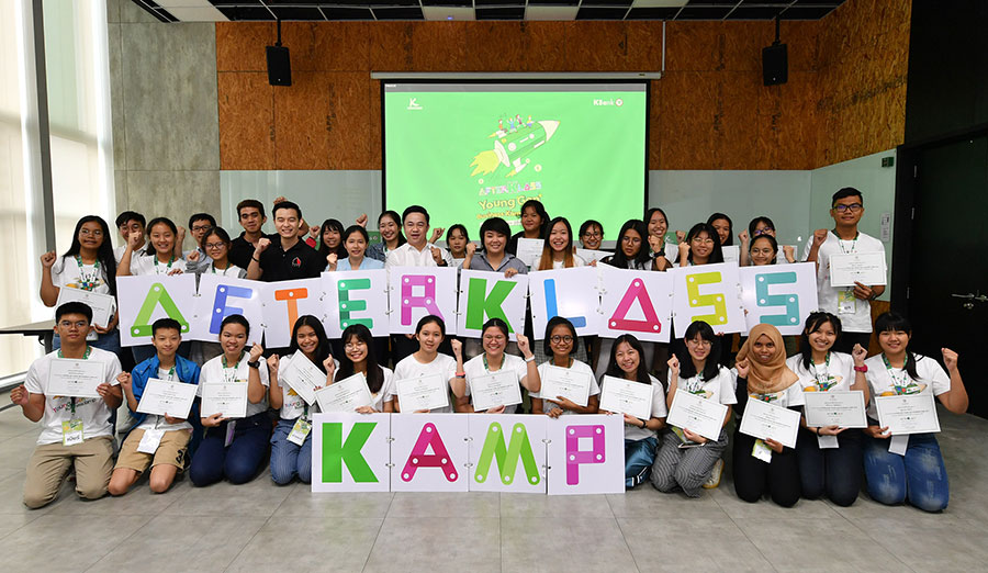 นายรวี อ่างทอง ผู้อำนวยการฝ่ายสื่อสารและองค์การสัมพันธ์ ธนาคารกสิกรไทย มอบประกาศนียบัตรแก่นักเรียนและนักศึกษาจำนวน 30 คน ที่ผ่านการคัดเลือกและเข้าร่วมอบรมค่าย AFTERKLASS Young Gen Business Kamp 2019 เป็นเวลา 3 วัน เรียนรู้พื้นฐานสำคัญในการเขียนแผนธุรกิจ (Business Model) พร้อมร่วมแข่งขันในรูปแบบ Hackathon ระดมความคิดสร้างสรรค์ไอเดียสินค้าและบริการที่จะช่วยแก้ปัญหาของการใช้ชีวิตในปัจจุบัน พร้อมแนวคิดทางการตลาด และการสร้างรายได้เชิงธุรกิจ ทีมชนะเลิศได้รับทุนการศึกษามูลค่า 20,000 บาท จัดขึ้นเป็นรุ่นที่ 1 ณ อาคารเคเอ็กซ์ ถนนกรุงธนบุรี เมื่อเร็ว ๆ นี้