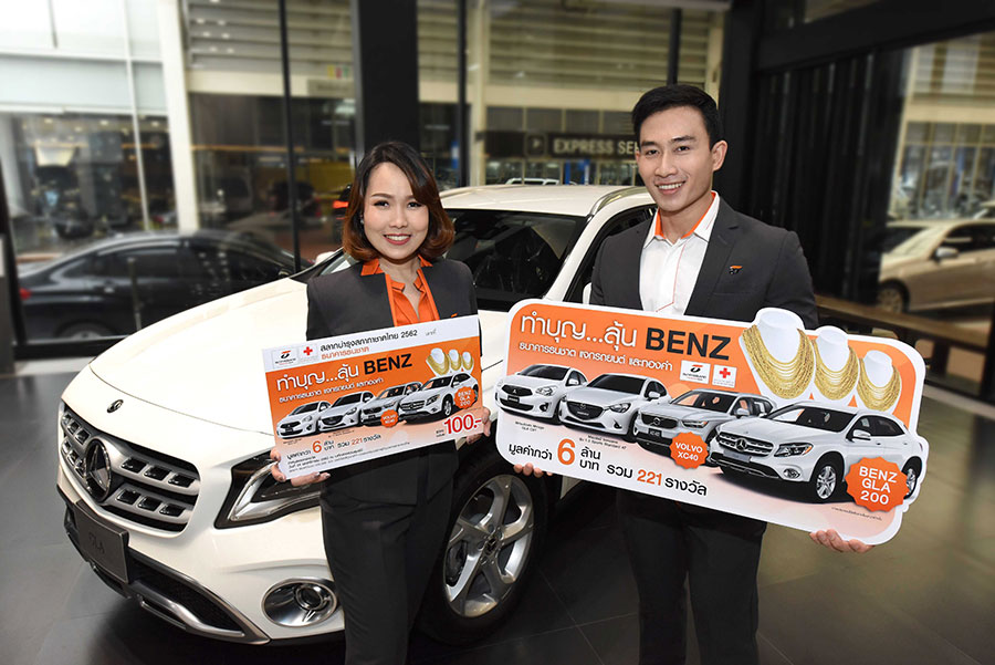 ธนาคารธนชาต จำกัด (มหาชน) ยังคงเดินหน้าตอกย้ำแนวคิด “Act for Social Progress ลงมือทำ...เพื่อสังคมก้าวหน้าอย่างยั่งยืน” เชิญชวน “ทำบุญ 1 ร้อย ลุ้นเบนซ์ 2 ล้าน” ซื้อสลากบำรุงสภากาชาดไทยของธนาคารธนชาต ประจำปี 2562 ได้แล้วตั้งแต่วันนี้ที่ธนาคารธนชาตทั่วประเทศ กว่า 490 สาขา โดยจำหน่ายฉบับละ 100 บาท พร้อมลุ้นรางวัลใหญ่ รถยนต์เมอร์ซิเดส เบนซ์ GLA 200 Urban มูลค่า 2.3 ล้านบาท และรางวัลอื่นๆ รวมมูลค่ากว่า 6 ล้านบาท ได้แก่ รถยนต์วอลโว่ XC40 T4 Momentum รถยนต์มาสด้า 2 รุ่น 1.3 Spots Standard AT รถยนต์มิตซูบิชิ มิราจ GLX CVT และสร้อยคอทองคำรวมกว่า 200 รางวัล รายได้หลังหักค่าใช้จ่ายจากการจำหน่ายสลากบำรุงสภากาชาดไทยนำขึ้นทูลเกล้าฯ ถวายสมเด็จพระกนิษฐาธิราชเจ้า กรมสมเด็จพระเทพรัตนราชสุดาฯ สยามบรมราชกุมารี องค์อุปนายิกาผู้อำนวยการสภากาชาดไทย เพื่อการช่วยเหลือสังคมและสาธารณกุศล โดยจะหมุนวงล้อออกสลากวันที่ 24 พฤศจิกายน 2562 ณ เวทีกลางสวนลุมพินี และสามารถตรวจผลการออกรางวัลได้ที่ QR Code ที่ปรากฏหลังสลาก หรือที่เว็บไซต์ www.thanachartcsr.com ได้ตั้งแต่วันอังคารที่ 27 พฤศจิกายน 2562 เป็นต้นไป