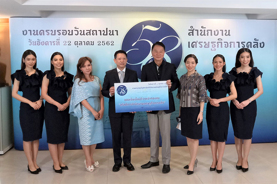นายอานนท์ วังวสุ นายกสมาคมประกันวินาศภัยไทย ร่วมแสดงความยินดีและมอบเงินสบทบเข้ากองทุนสวัสดิการสำนักงานเศรษฐกิจการคลัง (สศค.) จำนวน 100,000 บาท เนื่องในโอกาสครบรอบวันสถาปนาสำนักงานเศรษฐกิจการคลัง ปีที่ 58 โดยมี นายลวรณ แสงสนิท ผู้อำนวยการสำนักงานเศรษฐกิจการคลัง เป็นผู้รับมอบ ณ ห้องประชุมป๋วย อึ๊งภากรณ์ สำนักงานเศรษฐกิจการคลัง