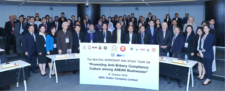 บริษัท ไออาร์พีซี จำกัด (มหาชน) ให้การต้อนรับผู้แทนหน่วยงานต่อต้านการทุจริตและกำกับการปฏิบัติงานต่อต้านการทุจริตของ 10 ประเทศอาเซียนกว่า 70 ท่าน ในการร่วมงานประชุม SEA- PAC (Southeast Asia Parties Against Corruption) ครั้งที่ 15th โดย สำนักงานคณะกรรมการป้องกันและปราบปรามการทุจริตแห่งชาติ (ป.ป.ช.) ได้รับเกียรติจากคุณสมเกียรติ เลิศฤทธิ์ภูวดล รองกรรมการผู้จัดการใหญ่ สายกลยุทธ์องค์กร คุณอาริสรา สุธาสุทธิ์ ผู้ช่วยกรรมการผู้จัดการใหญ่ สำนักกิจการองค์กร และคุณเบญจา แสงสูงเนิน ผู้จัดการส่วนงานกำกับองค์กร เป็นผู้แทน IRPC ให้การต้อนรับ พร้อมร่วมสัมมนาในกิจกรรม Study Tour Sea-Pac Member “Effective Anti-Bribery Compliance Culture within Businesses” โดยคุณอภิวรรณน์ อักษรสุวรรณ ผู้เชี่ยวชาญ สำนักกิจการองค์กร เพื่อแสดงถึงความเป็นผู้นำของ IRPC ในด้านการปฏิบัติตาม CG & CC สอดคล้องกับมาตรฐานสากลอย่างเป็นรูปธรรม ณ ห้องสวนสน ชั้น 6 ศูนย์เอนเนอร์ยี่คอมเพล็กซ์ อาคาร บี