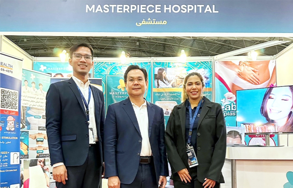 นายเมธัส พุกมะหะหมัด ผู้อำนวยการฝ่าย การตลาดต่างประเทศ และ นางสาววริศรา อัลอามูดี้ ผู้จัดการตลาดต่างประเทศ บริษัท มาสเตอร์ สไตล์ จำกัด (มหาชน) หรือ MASTER ถ่ายภาพร่วมกับ นายอภิชาติ ประเสริฐสุด ผู้อำนวยการสำนักงานส่งเสริมการค้าในต่างประเทศ เมืองเจดดาห์ ประเทศซาอุดีอาระเบีย กรมส่งเสริมการค้าระหว่างประเทศ - DITP กระทรวงพาณิชย์ ในโอกาสเข้าเยี่ยมชมบูธ MASTER ผู้ประกอบกิจการโรงพยาบาลด้านศัลยกรรมเสริมความงามภายใต้ชื่อ โรงพยาบาลมาสเตอร์พีช (Masterpiece Hospital) ในงาน Thai Trade Exhibition 2023 ซึ่ง MASTER ได้รับความไว้วางใจจากกลุ่มลูกค้าต่างชาติหลายภูมิภาคทั่วโลกเพิ่มมากขึ้นตามลำดับ โดยลูกค้ากลุ่มภูมิภาคตะวันออกกลางที่เข้ามาใช้บริการของโรงพยาบาลมากกว่า 10% ต่อปี ทั้งนี้ งานดังกล่าวจัดขึ้นเมื่อวันที่ 27-30 สิงหาคม 2566 ที่ผ่านมา ณ ประเทศซาอุดีอาระเบีย