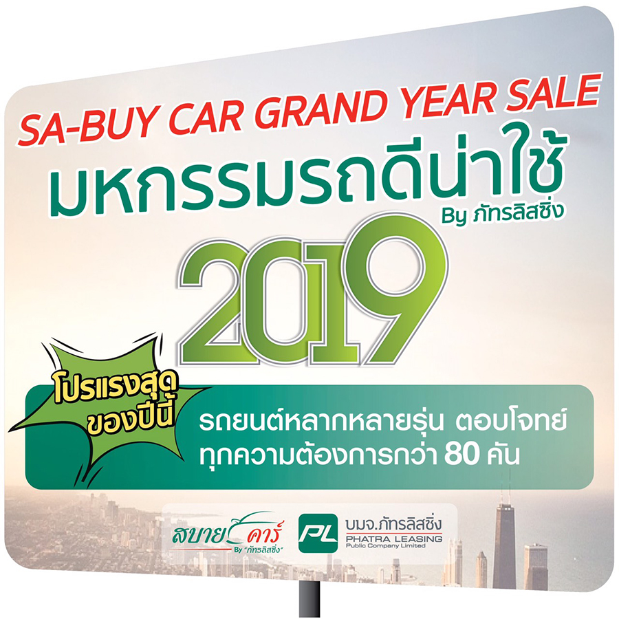 เมื่อเร็วๆ นี้ นายดนุ สุขวัจน์ ผู้ช่วยกรรมการผู้จัดการ ทำหน้าที่ผู้บริหารสายงานการเงิน และควบคุม พร้อมด้วย นายนฤพล วัฒนคุณ ผู้ช่วยกรรมการผู้จัดการ ทำหน้าที่บริหารสายงานบริการและบริหารทรัพย์สิน บริษัท ภัทรลิสซิ่ง จำกัด (มหาชน) หรือ PL เป็นตัวแทนบริษัทฯ ส่งมอบรถให้แก่ลูกค้าที่จองซื้อรถในงาน SA-BUY CAR GRAND YEAR SALE 2019 หรือ มหกรรมรถดีน่าใช้ By ภัทรลิสซิ่ง ซึ่งงานนี้ บริษัทฯ ได้นำรถยนต์หลากหลายรุ่นกว่า 80 คันมาจัดมหกรรม พร้อมโปรโมชั่นเด็ดโดนใจ มาตอบโจทย์ลูกค้า โดยบรรยากาศภายในงานเต็มไปด้วยความคึกคักจากการที่มีผู้สนใจจองซื้อรถยนต์ภายในงานจำนวนมาก
