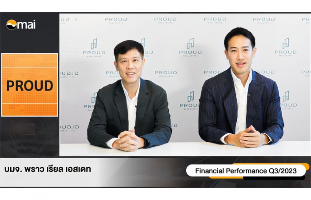 นิวส์ คอนเน็คท์ - นายพสุ ลิปตพัลลภ (ขวา) กรรมการบริหาร และ นายภูมิพัฒน์ สินาเจริญ (ซ้าย) ประธานเจ้าหน้าที่บริหาร บริษัท พราว เรียล เอสเตท จำกัด (มหาชน) หรือ PROUD เปิดเผยผลประกอบการงวด 9 เดือน ปี 2566 มีรายได้ 1,324 ล้านบาท กำไรสุทธิ 149 ล้านบาท พร้อมให้ทิศทางการดำเนินงานไตรมาส 4/2566 สัญญาณดี เดินเกมต่อ รับปัจจัยหนุนกำลังซื้อเรียลดีมานด์ ส่งรายได้ทั้งปีเข้าเป้า ในงานบริษัทจดทะเบียนพบผู้ลงทุน (Opportunity Day) จัดโดยตลาดหลักทรัพย์แห่งประเทศไทย สามารถรับชมบันทึกเทปได้ที่ www.set.or.th/streaming/vdos-oppday