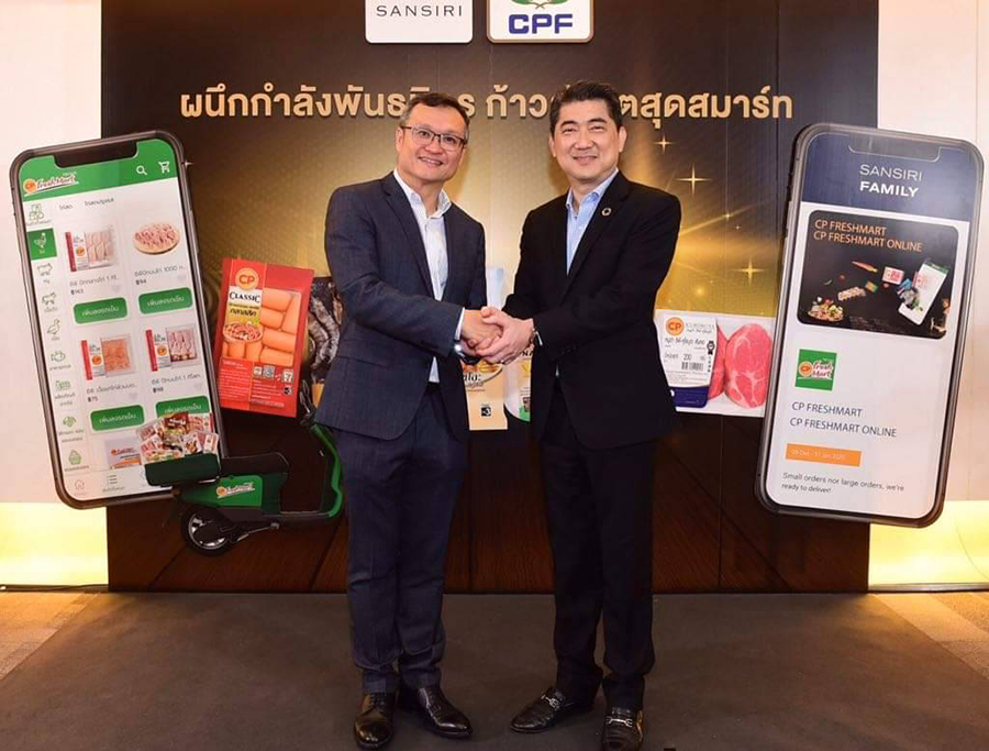 โดยความร่วมมือกับซีพีเอฟนี้เป็นครั้งแรกของวงการอสังหาริมทรัพย์ไทยในการผนวกแพลตฟอร์ม CP Freshmart Online Shop บน Sansiri Home Service Application นำร่องให้บริการจัดจำหน่ายและจัดส่งผลิตภัณฑ์คุณภาพ การรันตีความสดใหม่ ทั้งอาหารสด อาหารแช่แข็ง รวมถึงสินค้าบริโภคอื่น ๆ มากกว่า 1,000 รายการ ให้กับลูกบ้านแสนสิริในเขตกรุงเทพและปริมณฑล รวมทั้งใน จ. ภูเก็ต และ อ.ปากช่อง จ. นครราชสีมา พร้อมกับสิทธิพิเศษเฉพาะสำหรับ Sansiri Family เท่านั้น ตอกย้ำความมุ่งมั่นในการเติมเต็มประสบการณ์การอยู่อาศัยที่สมบูรณ์แบบของครอบครัวแสนสิริ