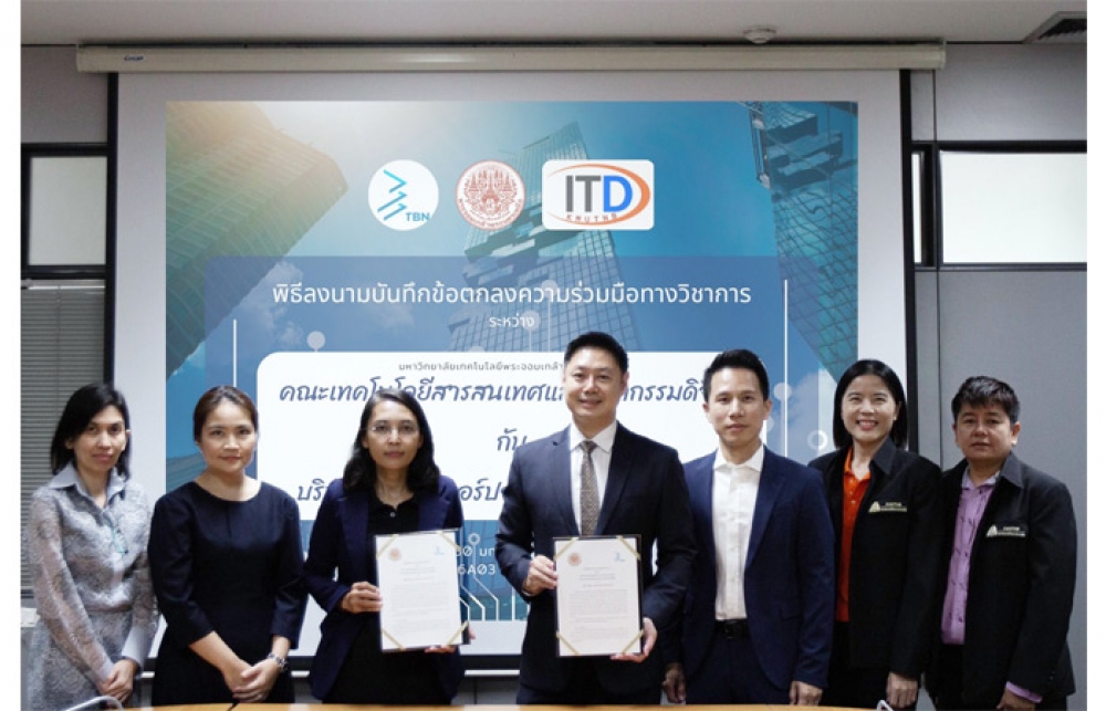 นิวส์ คอนเน็คท์ - ดร.เทอดพงษ์ หงษ์หิรัญเรือง (กลาง) ผู้บริหาร บริษัท ทีบีเอ็น คอร์ปอเรชั่น จำกัด (มหาชน) หรือ TBN และในฐานะศิษย์เก่าคณะพัฒนาธุรกิจและอุตสาหกรรม มหาวิทยาลัยเทคโนโลยีพระจอมเกล้าพระนครเหนือ (มจพ.) ถ่ายภาพเป็นที่ระลึกร่วมกับศาสตราจารย์ ดร.สุนันฑา สดสี (ที่ 3 จากซ้าย) คณบดีคณะเทคโนโลยีสารสนเทศและนวัตกรรมดิจิทัล มหาวิทยาลัยเทคโนโลยีพระจอมเกล้าพระนครเหนือ ภายหลังพิธีลงนามบันทึกข้อตกลงความร่วมมือทางวิชาการเพื่อสร้างความร่วมมือวิจัยและพัฒนานวัตกรรมและเทคโนโลยี ณ ห้องประชุม ชั้น 6 อาคารนวมินทรราชินี คณะเทคโนโลยีสารสนเทศและนวัตกรรมดิจิทัล เมื่อวันที่ 30 มกราคม 2567