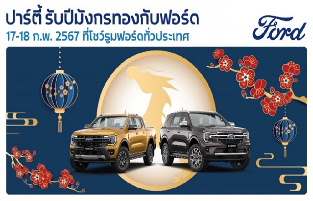 โดยเดือนก.พ. นับเป็นช่วงโอกาสความพิเศษ มีเทศกาลสำคัญทั้งตรุษจีนและวาเลนไทน์ ฟอร์ดจึงจัดกิจกรรมที่โชว์รูมทั่วประเทศ เพื่อให้ลูกค้าฟอร์ดและผู้ที่สนใจมาเลือกซื้อรถฟอร์ดคันที่ใช่กับข้อเสนอสุดคุ้ม พร้อมร่วมสนุกในบรรยากาศที่อบอวลด้วยความรักและความมงคลกับกิจกรรมภายในงาน พิเศษ! สำหรับผู้ที่ลงทะเบียนก่อนเข้าร่วมงานจะได้รับอั่งเปาไปเสริมมงคล ผู้ที่สนใจสามารถติดต่อสอบถามรายละเอียดข้อมูลการจัดงานได้ที่โชว์รูมฟอร์ดใกล้บ้านท่าน และดูรายละเอียดเกี่ยวกับข้อเสนอพิเศษจากฟอร์ดเพิ่มเติมได้ที่เว็บไซต์