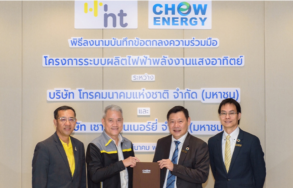 ทั้งนี้เนื่องจาก NT เป็นองค์กรที่ดูแลเรื่องโทรคมนาคมของประเทศและมีพื้นที่ให้บริการครอบคลุมในทุกภูมิภาค จึงใช้พลังงานไฟฟ้าเป็นปริมาณมากในแต่ละปี โดยปัจจุบัน NT มีความมุ่งมั่นที่จะเป็นองค์กรที่เป็นมิตรต่อสิ่งแวดล้อม และลดภาระค่าใช้จ่ายด้านพลังงานไฟฟ้า จึงต้องการนำไฟฟ้าที่ผลิตได้จากระบบผลิตไฟฟ้าพลังงานแสงอาทิตย์ ซึ่งเป็นพลังงานสะอาดและเป็นมิตรต่อสิ่งแวดล้อม มาใช้ควบคู่กับ ระบบไฟฟ้าหลักของการไฟฟ้า มีเป้าหมายเพื่อลด Carbon Footprint ลง และสนับสนุนนโยบายการอนุรักษ์พลังงาน โดยร่วมกับ CHOW ที่มีเทคโนโลยีที่ทันสมัยในการบริหารจัดการ มีความเข้าใจในการทำโครงการพลังงานแสงอาทิตย์ และมีประสบการณ์ในหลายรูปแบบ ทั้งในประเทศและต่างประเทศ ซึ่งสามารถนำมาใช้ในการพัฒนาโครงการและการก่อสร้าง รวมถึง การดำเนินการและบำรุงรักษาโครงการให้เกิดประสิทธิภาพสูงสุดในการใช้งานได้