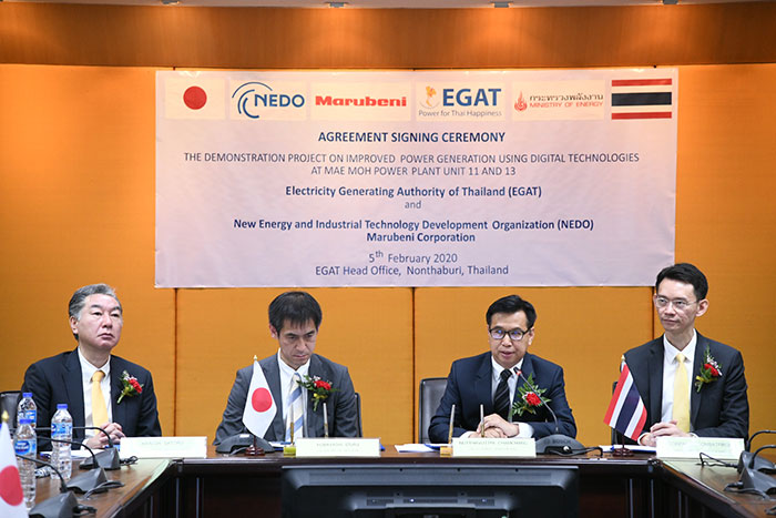 เมื่อวันที่ 5 กุมภาพันธ์ 2563 นายณัฐวุฒิ แจ่มแจ้ง รองผู้ว่าการผลิตไฟฟ้า การไฟฟ้าฝ่ายผลิตแห่งประเทศไทย (กฟผ.) เปิดเผยว่า กฟผ.ร่วมกับองค์การพัฒนาพลังงานใหม่และเทคโนโลยีอุตสาหกรรม (New Energy and Industrial Technology Development Organization : NEDO) ประเทศญี่ปุ่น และบริษัท มารูเบนิ จำกัด ลงนามความร่วมมือนำเทคโนโลยีดิจิทัลมาช่วยสนับสนุนการทำงานของโรงไฟฟ้าแม่เมาะ หน่วยที่ 11 และ 13 ที่จ.ลำปาง
