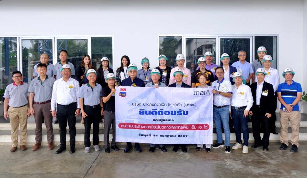 นายธานิน สัจจะบริบูรณ์ (แถวหน้า คนที่ 4 จากซ้าย) ประธานเจ้าหน้าที่บริหาร และนายธีรวัต อมรธาตรี (แถวหน้า คนกลาง) กรรมการผู้จัดการ พร้อมคณะผู้บริหาร บริษัท บางกอกชีทเม็ททัล จำกัด (มหาชน) หรือ BM ให้การต้อนรับผู้บริหาร สมาคมบริษัทจดทะเบียนในตลาดหลักทรัพย์ เอ็ม เอ ไอ และคณะผู้บริหารตลาดหลักทรัพย์ เอ็ม เอ ไอ ในโอกาสเข้าเยี่ยมชมกิจการและเยี่ยมชมโรงงาน พร้อมแลกเปลี่ยนมุมมองและประสบการณ์ในธุรกิจร่วมกัน ณ บริษัท บางกอกชีทเม็ททัล จำกัด (มหาชน) อำเภอพระประแดง จังหวัดสมุทรปราการ เมื่อวันที่ 24 กรกฎาคม 2567