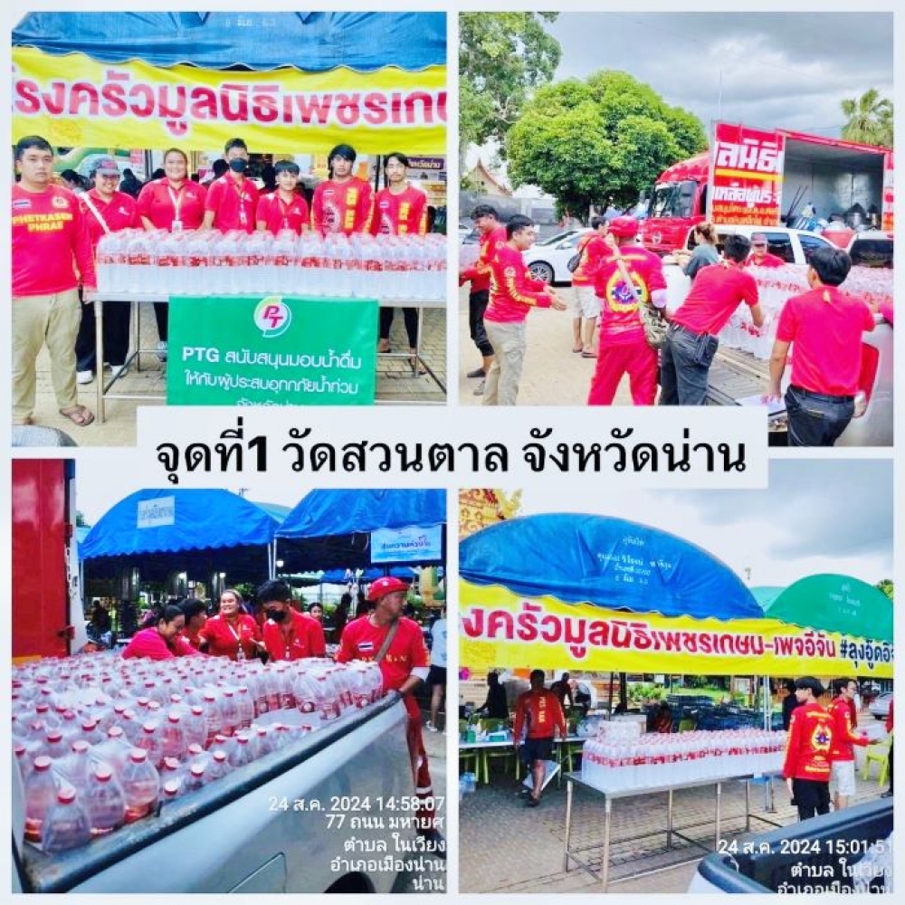 กลุ่มบริษัท พีทีจี เอ็นเอนยี จำกัด (มหาชน) หรือ PTG และบริษัทปิโตรเลียมไทยคอร์ปอเรชั่น จำกัด หรือ PTC ร่วมเป็นส่วนหนึ่งในปฎิบัติการบรรเทาความเดือนร้อนและเป็นกำลังใจให้กับพี่น้องผู้ประสบอุทกภัยใน3 จังหวัดภาคเหนือ ได้แก่ จังหวัดเชียงราย จังหวัดแพร่ และจังหวัดน่าน โดยได้ร่วมสนับสนุนน้ำดื่มแบรนด์ “PT” บรรจุขวดขนาด 1.5 ลิตร ส่งตรงให้กับพี่น้องผู้ประสบอุทกภัยไว้ใช้ดื่ม ซึ่งกลุ่ม PTG ขอแสดงความห่วงใยและส่งกำลังใจให้กับผู้ประสบอุทกภัย รวมถึงเจ้าหน้าที่ที่ปฏิบัติงาน ในการให้ความช่วยเหลือครั้งนี้ และหวังว่าสถานการณ์จะกลับคืนสู่สภาวะปกติในเร็ววัน
