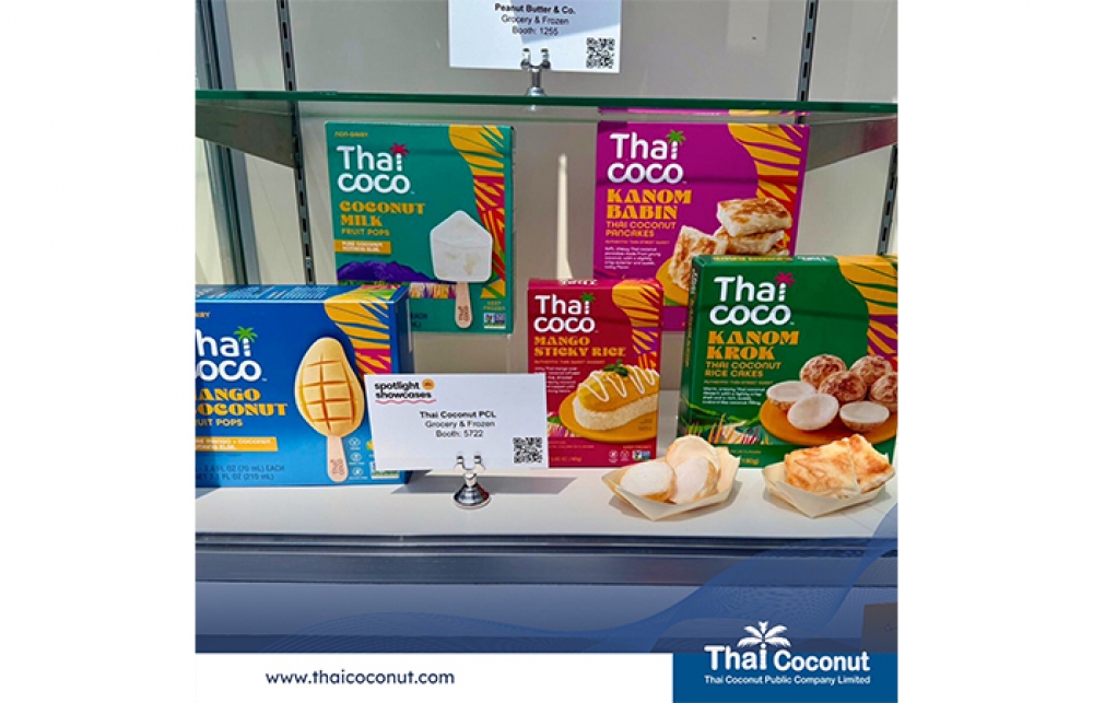 บริษัท ไทย โคโคนัท จำกัด (มหาชน) หรือ COCOCO ร่วมแสดงศักยภาพในงาน Summer Fancy Food Show 2025 โดยเป็นงานแสดงสินค้าด้านอาหารและเครื่องดื่มระดับโลก ที่รวมแบรนด์ชั้นนำจากทั่วทุกมุมโลก โดยบูธของบริษัทฯ ได้รับความสนใจจากผู้เข้าร่วมงานอย่างคับคั่งสำหรับในปีนี้ Thai Coconut ได้นำเสนอผลิตภัณฑ์จากมะพร้าวไทยที่ตอบโจทย์เทรนด์ผู้บริโภคยุคใหม่ ทั้งกลุ่มคนรักสุขภาพและผู้ที่ชื่นชอบรสชาติจากธรรมชาติ ภายใต้แนวคิด “นำรสชาติไทยสู่ตลาดโลก” โดยผลิตภัณฑ์ไฮไลต์ที่นำไปจัดแสดง ได้แก่ : Cold Brew Thai Tea with Coconut milk , Vegan Coconut Crispy Rolls, Coconut Water / Organic Coconut Water, Coconut Blossom Tea, Frozen Thai Desserts : เช่น ขนมครก ขนมบ้าบิ่น และข้าวเหนียวมะม่วง Thai Fruit Ice Stick