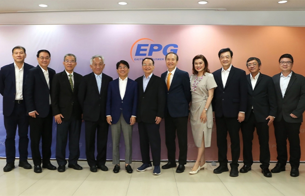 นายวัชรา ตันตริยานนท์ ประธานกรรมการ (ที่ 5 จากซ้าย) ดร.ภวัฒน์ วิทูรปกรณ์ (กลาง) รองประธานกรรมการ และประธานเจ้าหน้าที่บริหาร พร้อมด้วยคณะกรรมการและผู้บริหาร บริษัท อีสเทิร์นโพลีเมอร์ กรุ๊ป จำกัด (มหาชน) หรือ EPG ร่วมประชุมสามัญผู้ถือหุ้นประจำปี 2568 ด้วยวิธีการผ่านสื่ออิเล็กทรอนิกส์ เมื่อเร็ว ๆ นี้